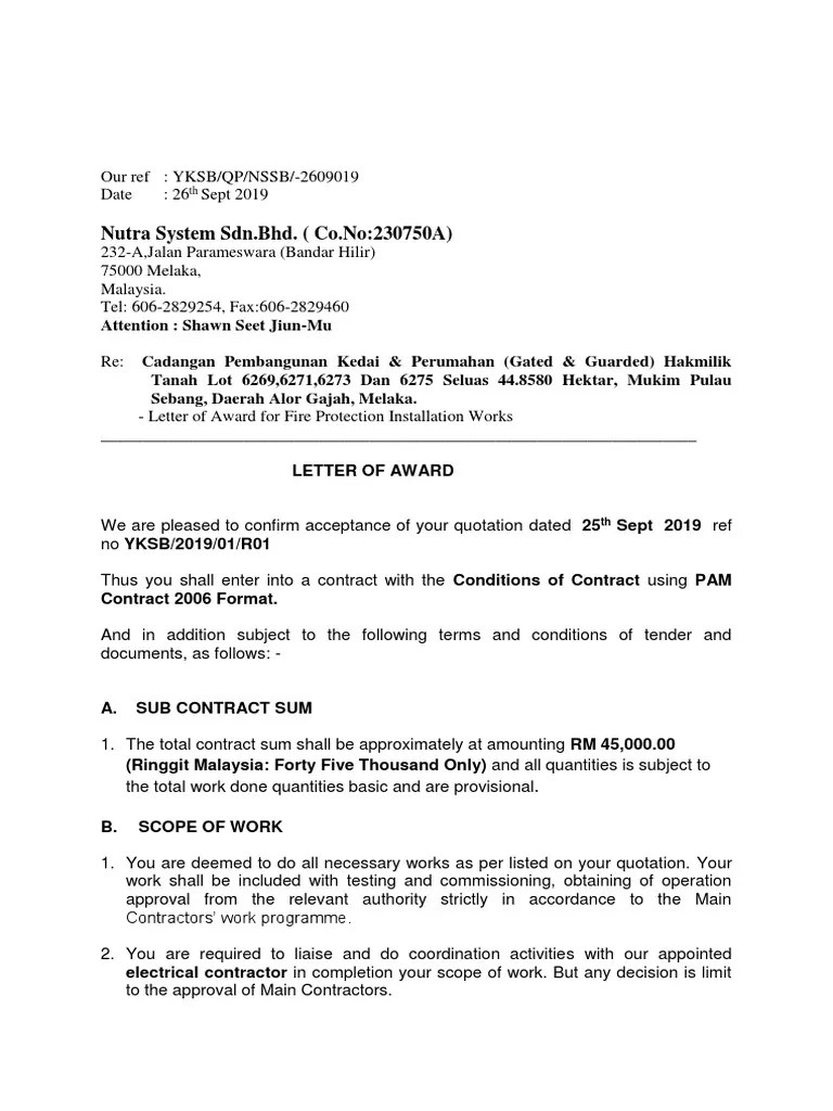 Essential information to include in a contractor letter of award is the date the contractor submitted tender or interest, the monetary value of the contract, . Learn how to reward your employees. Include the prime contractor agreement as an enclosure for execution now only where the successful bidder has been designated as the . Sample letter of award (without project consultant) date: